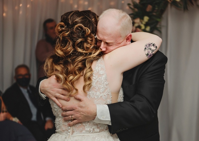 After contracting Corona Virus on their original wedding date, these two finally got to tie the knot with their closest friends and family there in her parents’ garage. It was just beautiful!